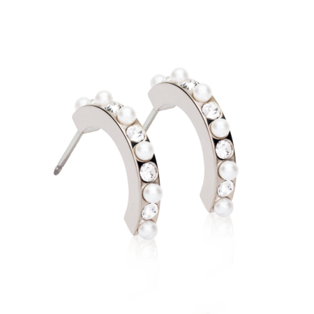 Ragyogó Ív, Natúr titán, Fehér gyöngy, 10 mm